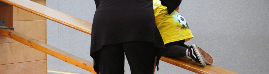 A little later, the hall is full of activity. The eleven-year-old plays every sport the hall has to offer – basketball, football, badminton. His father laughs as he struggles to keep up, and in the end, both are standing there with bright red faces, as the mother has also been actively joining in the fun. ‘I can’t do it anymore,’ gasps the father. ‘I can! One more round!’ shouts his son, dribbling past his father.